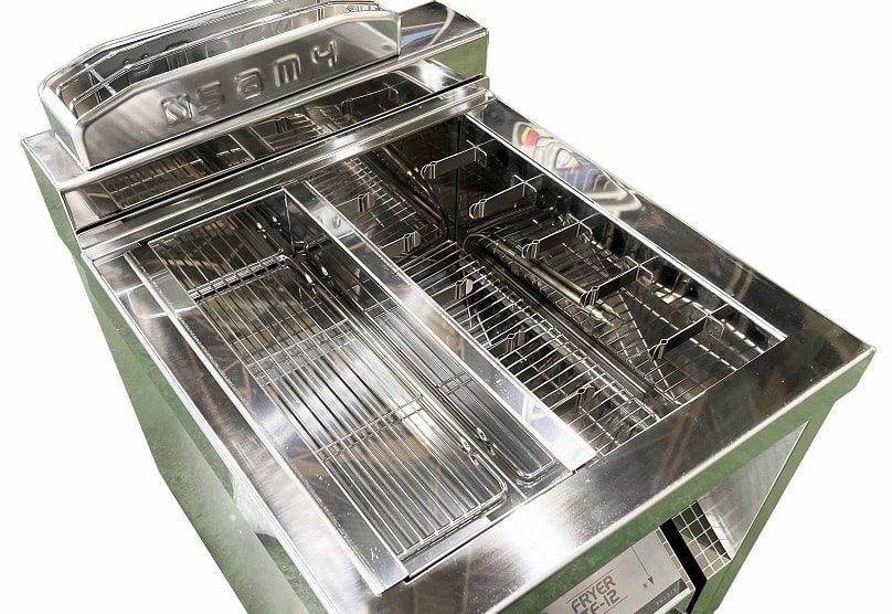 - 油槽の深い所と浅い所に区分したシンク形状で浅い場所での揚げの整形、深い場所でのチキンの揚げアメリカンドッグなどができます。