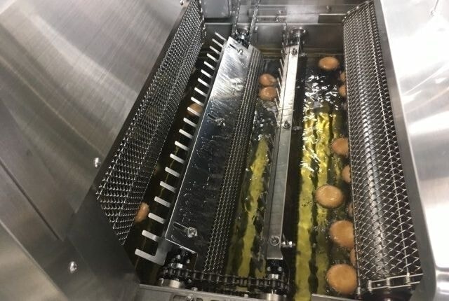 パドル機構で揚げムラをなくし均一な商品に仕上げます。