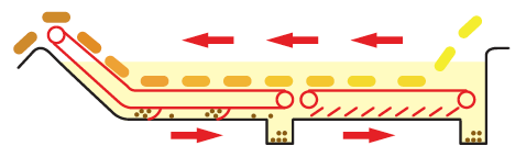 1分間に7℃以上の温度上昇、立ち上がり時間は25〜30分でOK。有効活用される熱エネルギーが従来の約2倍と高いためにすばやく熱供給されます。投入時の温度降下が少なく、復元時間が早いので、いつもカラッと揚がります。温度制御はPID制御により効率よくバーナーを燃焼。