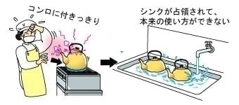 ※一般的な給茶作業の場合、大なべ・回転釜・シンクを利用するため、その間、他作業に使用できなくなります。